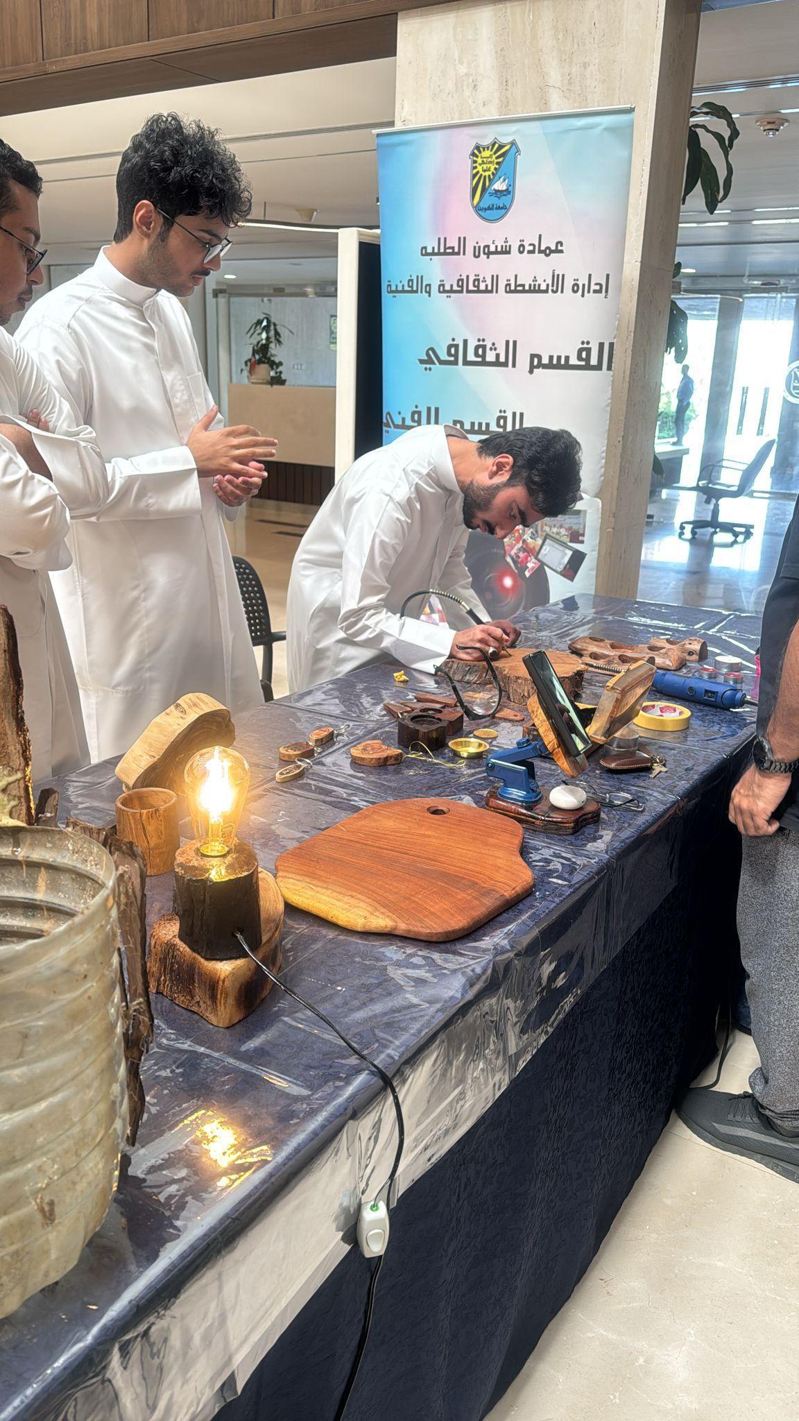 أُقيمت الورشة بمشاركة الأستاذ مشعل مندني، حيث قدّم خلالها شرحًا عمليًا للطلبة حول آليات إعادة استخدام الأخشاب والبلاستيك عبر تقنيات الحفر والتزيين والتحويل الفني، بما يساهم في إعادة التدوير بصورة مبتكرة.