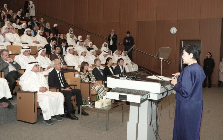 وعقب المحاضرة، التقت السيدة كويكي بعدد من الطلبة اليابانيين الدارسين في جامعة الكويت، حيث عبّرت عن اعتزازها بتجربتهم التعليمية في الكويت، وأشادت باهتمام الجامعة بتوفير بيئة أكاديمية تشجّع على التبادل الثقافي وتُعزّز روح التعاون بين الشعوب.