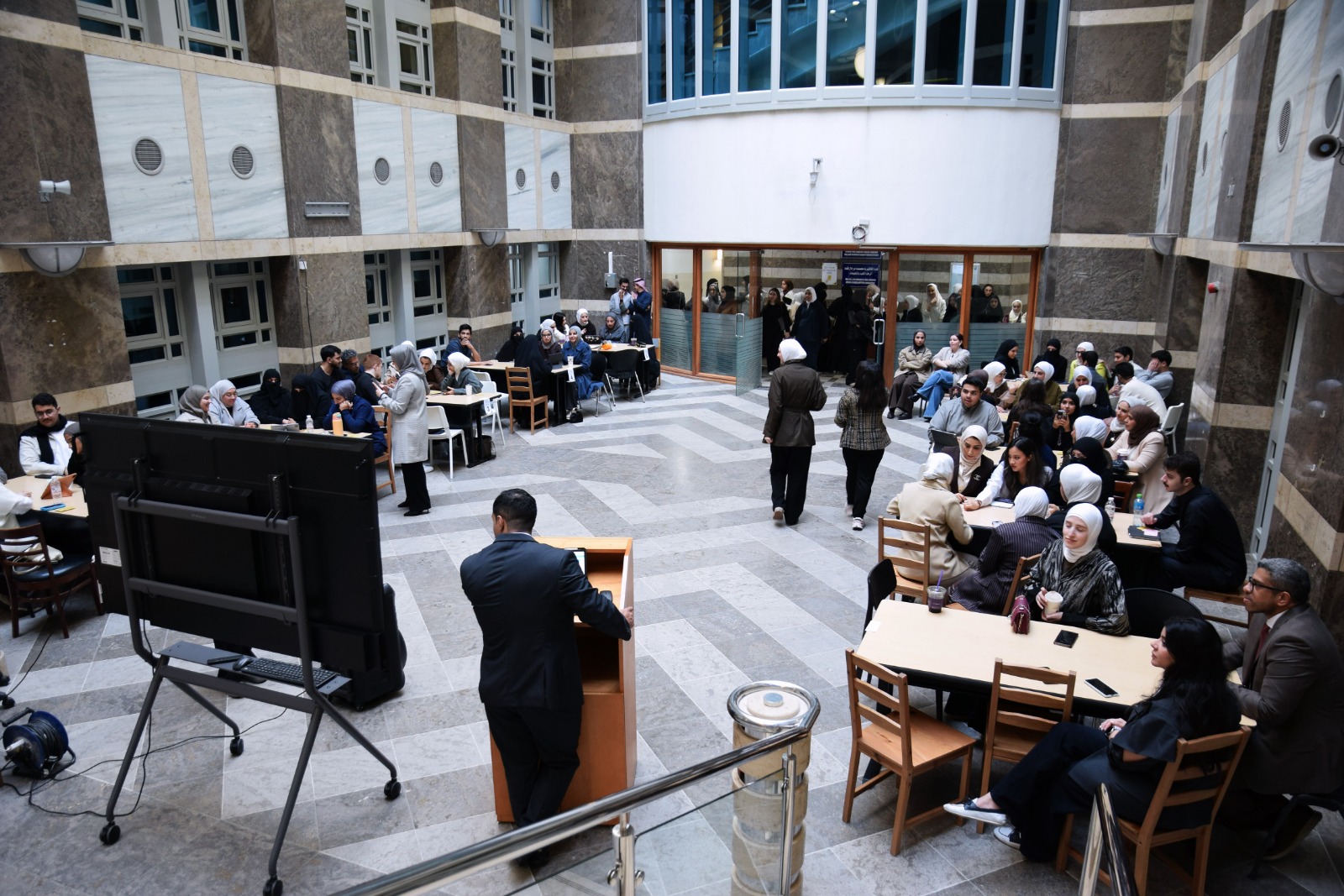 وشهدت الفعالية مشاركة واسعة من الطلبة، حيث جاءت على شكل مسابقة تفاعلية هدفت إلى تعزيز فهم أدوار ومسؤوليات التخصصات الطبية المختلفة، وربط المفاهيم النظرية بالتطبيق العملي في بيئة تعليمية قائمة على التفاعل والعمل الجماعي. وقد أسهمت طبيعة المسابقة في خلق أجواء تنافسية إيجابية شجّعت الطلبة على تبادل المعرفة والعمل بروح الفريق الواحد.