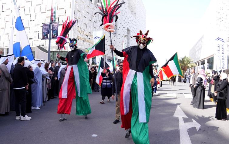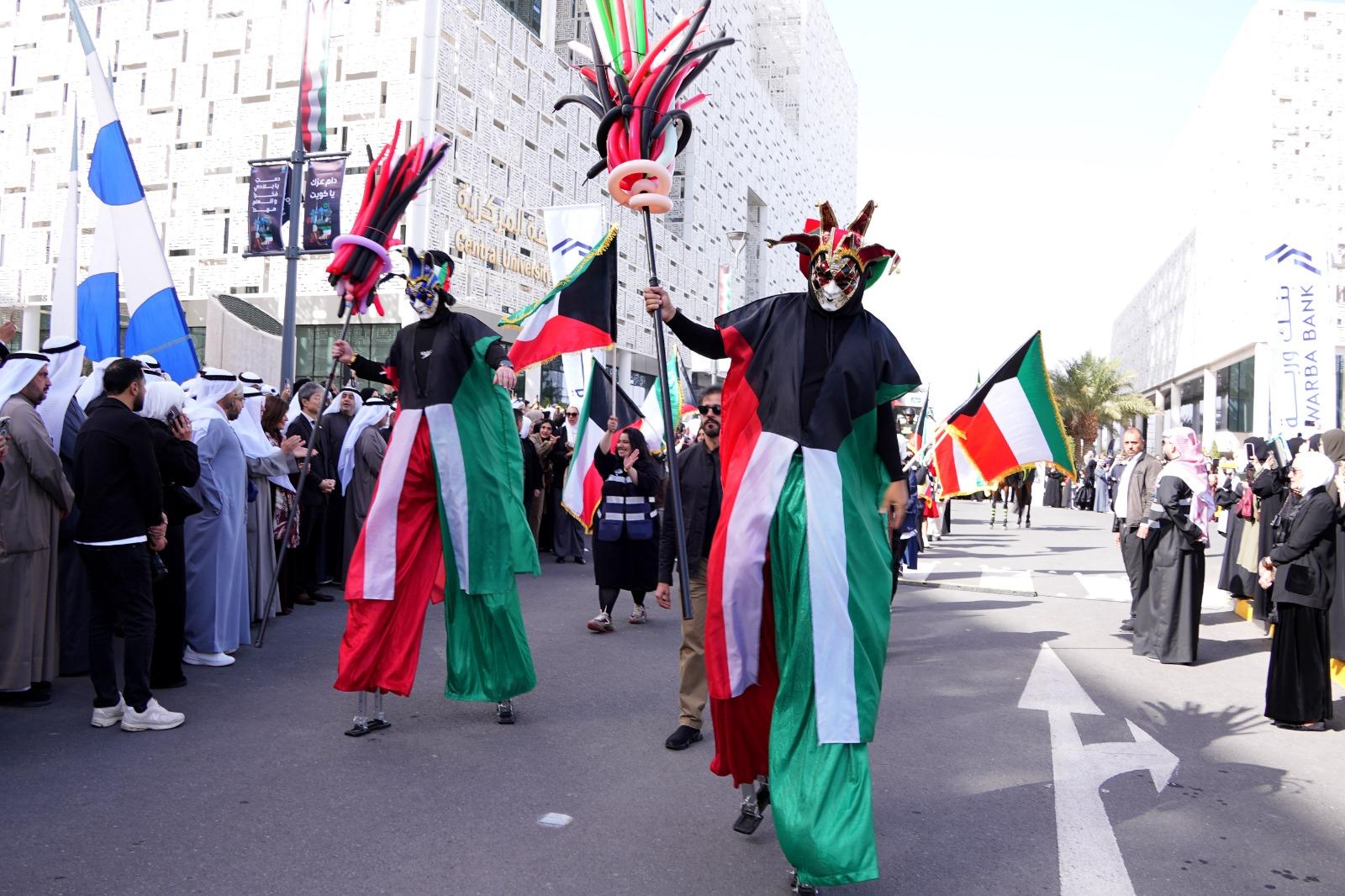 واكتملت لوحة الاحتفال بمسيرة وطنية طلابية مهيبة، شارك فيها طلبة جامعة الكويت، عبّروا من خلالها عن مشاعر الفرح والاعتزاز والفخر بالوطن الغالي.
