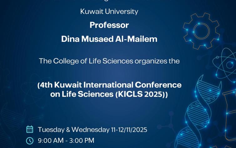 The College of Life Sciences at Kuwait University is preparing to launch the Fourth Kuwait International Conference on Life Sciences (KICLS), under the patronage of the President of Kuwait University, Prof. Dina Musaed Al-Mailem, and with the support of Kuwait Foundation for the Advancement of Sciences (KFAS). The conference serves as an international scientific platform bringing together researchers, experts, and decisionmakers from various parts of the world.