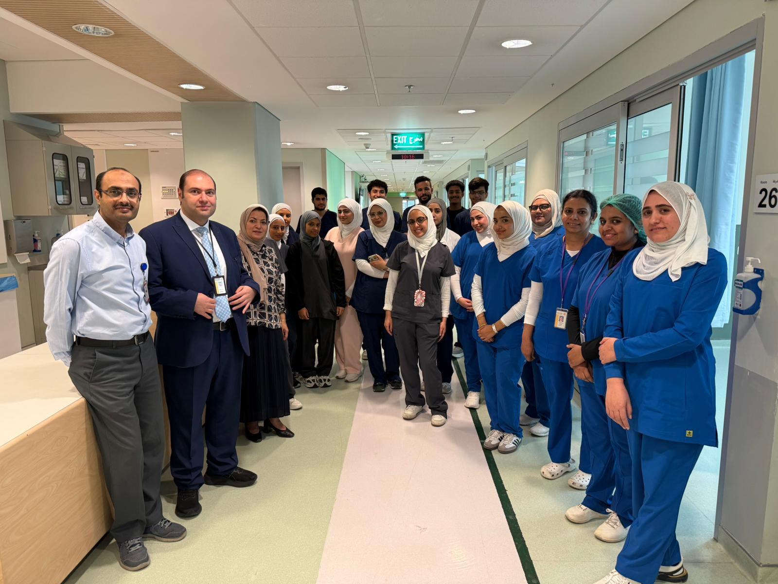 The Department of Specialized Nursing at the College of Allied Health Sciences – Kuwait University has officially launched its clinical field training program for second-year students at Amiri Hospital. The department was represented during the inaugural visit by Prof. Suad Al-Fadhli, Acting Head of the Department, accompanied by a group of 27 students.
